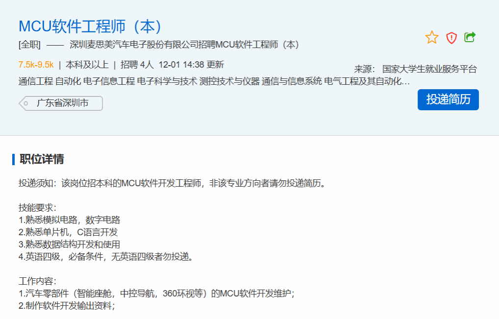 深圳麦思美汽车电子股份有限公司线上招聘 | 本科及以上学历