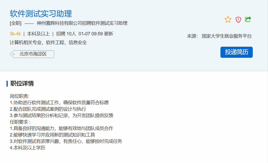 神州嘉辉科技有限公司招聘 | 本科及以上学历