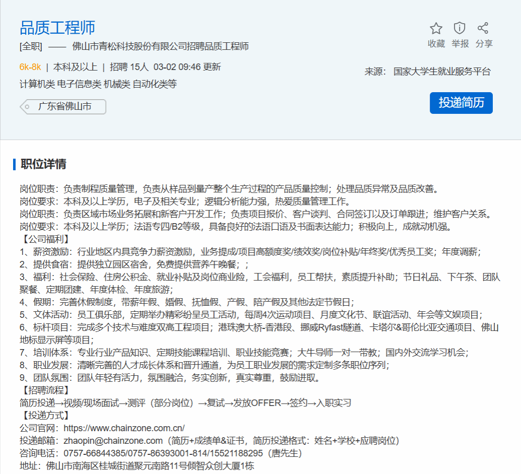 佛山市青松科技股份有限公司线上招聘 | 本科及以上学历