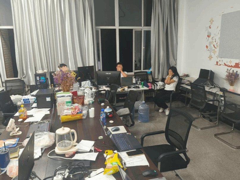 在国赛网评材料提交前的冲刺阶段,指导教师与团队成员多次在夜间集中研讨,对照专家模拟反馈逐条梳理问题、逐项完善细节。长时间的专注工作让疲惫逐渐显现,但团队始终保持高度专注,围绕关键问题反复推敲,确保每一处修改都经得起检验。